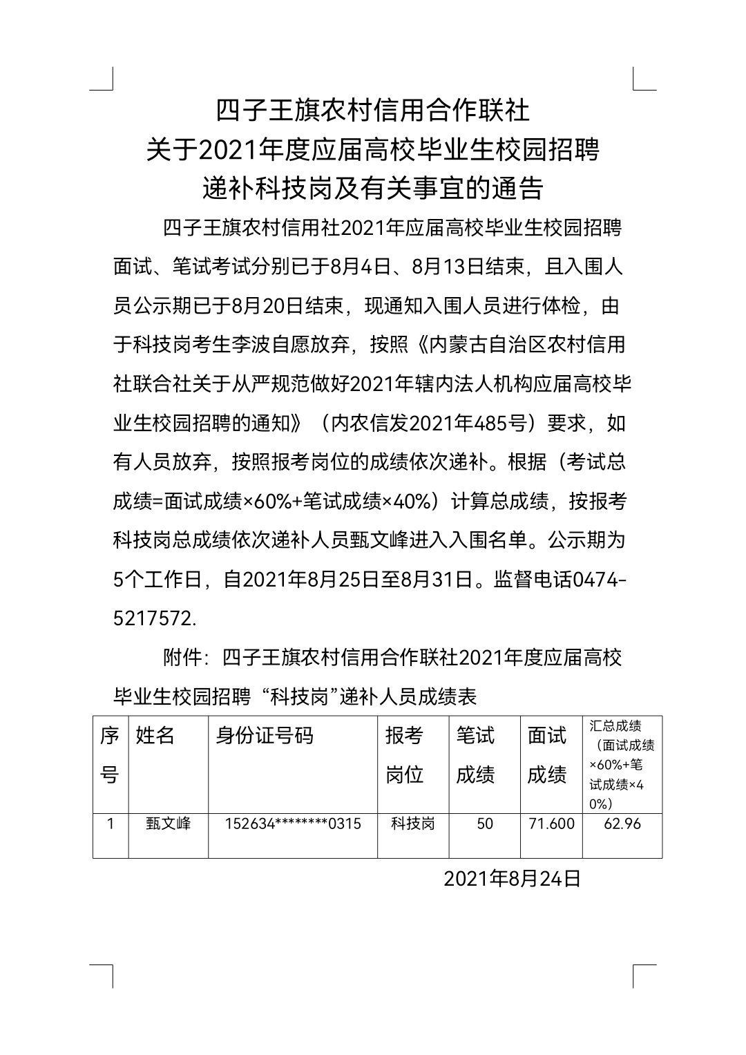 四子王旗農(nóng)村信用合作聯(lián)社關(guān)于2021年度應(yīng)屆高校畢業(yè)生校園招聘遞補(bǔ)科技崗及有關(guān)事宜的通告新聞動(dòng)態(tài)當(dāng)前位置